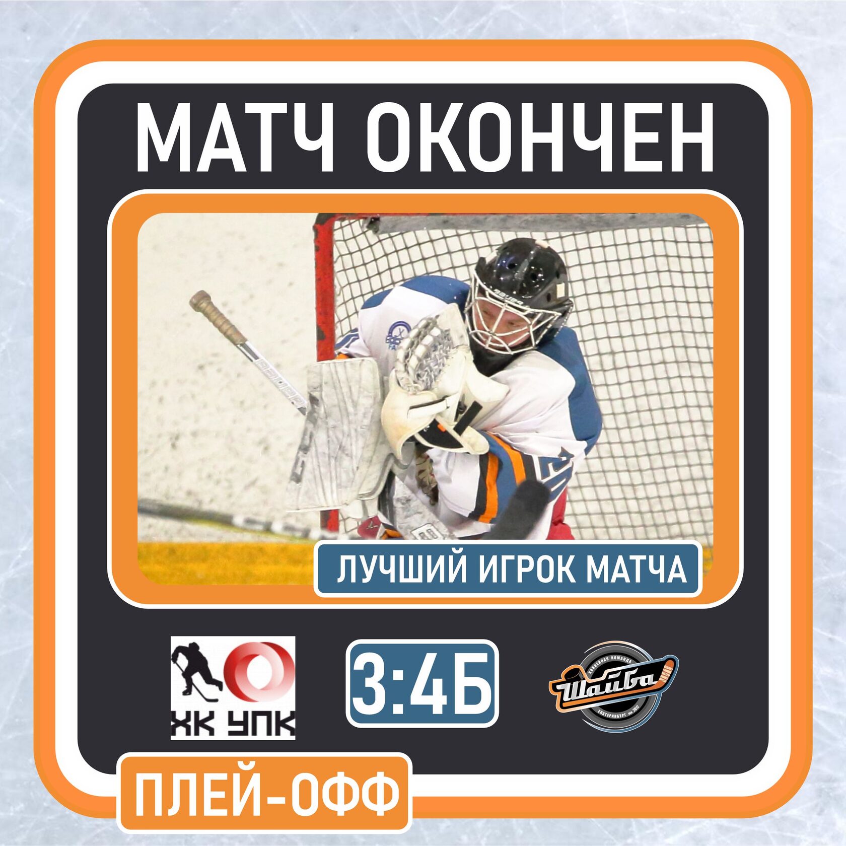 Ответный матч с ХК "УПК", отступать некуда, проигрывать нельзя, а продолжить сезон ой, как хочется! Заряжались, настраивались перед игрой, вышли и провалили первый период... Причем провалили не все и провалили по разному. Если первая пятерка, как всегда, старалась, создавала моменты и отрабатывала в обороне, то вторая и третья, в первых же своих сменах заработали по "-1", причем в самых глупых ситуациях, оба гола с добивания на "пятаке", сгрудились, не разобрались между собой и на выходе 2:0. Моменты, конечно, были и были прямо очень хорошие и не только у "мощных", парни из второй и третьей, тоже не лыком шиты, но как будь то не хватала запала и искры, все время на полшага позади. Матч плей-офф, сдаваться никто не хотел, удалений было, умотаться! Но вот дивидендов из этого извлечь не могли ни те, ни другие. На перерыв ушли в равных и неполных составах, соответственно вторую половину игры начали так же и вот тут, что то поменялось, толи Алексей Андреевич нашел, какие то правильные слова в перерыве: "Парни, есть всего 23 минуты", то ли сами пацаны это осознали, что конец сезона близок, а скорее всего - это комбинация этих моментов! Но вышла другая команда! Виктор Прокудин сподряд выиграл три вбрасывания, на одной и той же точке, в левом круге и каждый раз на подборе Алексей Трухин, и вот третья попытка увенчалась успехом! Алексей попал в "девятку", первый гол в розыгрыше! 2:1! Начали давить, пошли хорошие моменты, но пропустили совершенно ненужный и необязательный гол... Сутолока на своей синей линии, попадание в защитника, не усмотрели за нападающим и соперник из правого круга прицельно бросил в ворота. 3:1. Череда необдуманных и случайных событий привела к весьма, плачевному результату. В матчах на вылет, нужно обдумывать каждый свой шаг на перед, тем более, что голы команде даются очень тяжело, а пропускаем мы, очень легко. В следующей же смене, Прокудин забрался с шайбой в зону, но не вышел бросок, шайба отскочила к Нафикову и Дамир переиграл вратаря соперника! 3:2! Должно было повезти и повезло, хотя если бы парни так не старались, то и не было бы этого отскока! После этого тренер перешел на игру в два звена, взвинтив темп и усадив на лавку третью тройку, не шло у парней в этом матче, хотя старались. Парни в белом обосновались в зоне соперника, хозяйничали там, как у себя дома, очень здорово в атаке помогал Георгий Кислицын, закрывал синюю, цеплялся за каждую возможность. Вот именно этот натиск и принес результат! Трухин, как таран продрался сквозь соперников, все руки "обстучали", но Алексей "прострелил" на "пятак", где Виктор Прокудин грамотно подставил клюшку и перебросил вратаря!!! 3:3! За 4,5 минуты до сирены, Виктор сравнял счет в матче и дал надежду на продолжение этой серии и этого сезона! Как с цепи сорвались команды, сначала "шайбовцы" пошумели в зоне хозяев, затем хозяева имели сумасшедшие моменты у ворот гостей, Дмитрий Субботин, какими то нереальными действиями не дал шайбе зайти в ворота! А за секунду до сирены, Дамир Нафиков попал в штангу! Накал матча был просто не ральным, самая настоящая битва плей-офф! Буллиты. Пусть они считается лотерей, но при таком желании и при такой игре, не могла "Шайба" проиграть! Дмитрий Субботин отразил все три попытки, переиграв оппонентов, а Антон Астахов реализовал единственную попытку поставив точку в этой игре! Сейчас нас ждет трети
