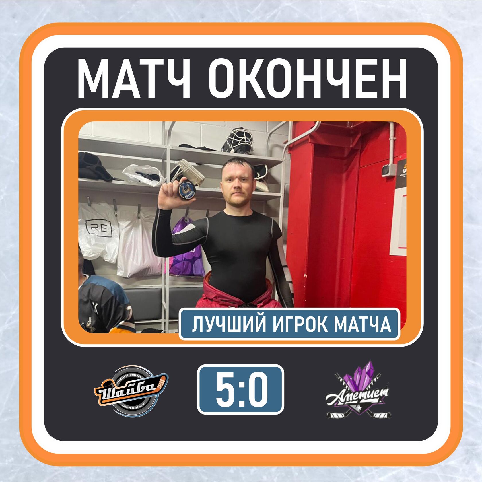 Одержали первую победу в сезоне! Соперник замыкает таблицу группы "В", но тем не менее, парни из "Аметиста" старались и имели шансы уйти от сухого поражения. Но Дмитрий Субботин заработал "сухарь", как никто другой, он заслужил его своей работой, как в данном матче, так и в остальных, в которых принимал участие! Полевые игроки, тоже провели достойный матч, хоть и не без огрехов. Соперник, в составе имел много начинающих игроков, но это не умоляет заслуг команды хозяев! Очередной отличный матч провело звено "мощных", Алексей Трухин 2+2, Дамир Нафиков 1+1, Виктор Прокудин 1+1, так же Виктор оформил победную шайбу! Две классные передачи оформил Иван Шмелев, здорово разогнав две голевые атаки! Сработало большинство, весьма зрелищную комбинацию разыграло второе звено, особенно филигранной вышла передача Валерия Большедворова на Павла Долгошеева, который вколотил шайбу в ворота "Аметиста". Могли и должны были забивать больше, Олег Векшин имел пару убойных моментов, но оба раза попал во вратаря. Мохов и Большедворов тоже могли решать моменты в свою пользу! Да, класс соперника позволил навязать свою игру, не было особой суеты, если не брать несколько несогласованных действий при выходе из своей зоны, Согрин Егор "напожарил", но Дима Субботин подчистил ошибки. Как только игра начинал приобретать акцентированность на воротах парней в белой форме, возникала масса опасных моментов! Не идти в углы, что бы оттуда искать, кого-то, идти прямо на "пятак", не боятся, чаще бросать по воротам и уверенность придет! Следующий матч будет с более опытной командой, хотя "Шайбе" уже некуда отступать, нужно целятся за каждую возможность и полувозможность!