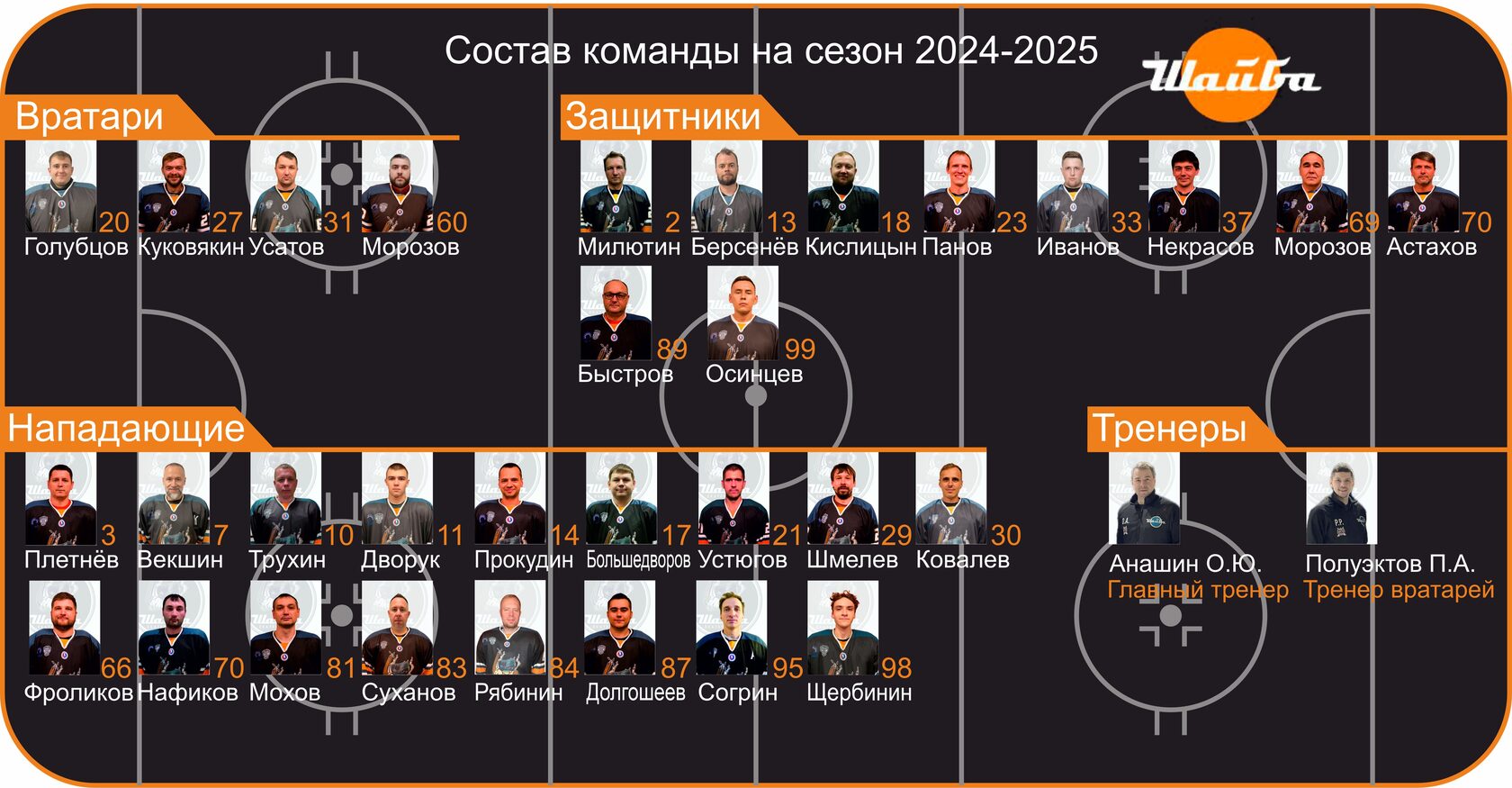 Перед началом сезона 2024-2025 команду покидают два Игрока с большой буквы! Максим Закиров, страж ворот, который держал команду в игре во многих матчах, спасал "вытаскивая" 100% голы, решил приостановить спортивную картеру, желаем успехов во всех начинаниях и будем рады видеть в рядах "Шайбовцев" в будущем! Также после 4-х сезонов в составе Шайбы, уходит из команды опытный защитник Олег Грязнов, будем скучать по его спокойствию, передачам под дальнюю синюю и широкой улыбке!) Я думаю парни согласятся со мной, что наряду с №88 (Поддубкин В.), № 92 и №32, нужно вывести из обихода команды)